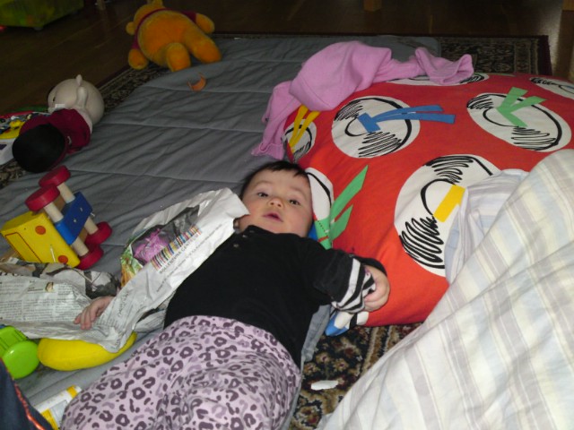 Stannade inne. Maja fick sova mycket. Nu vill hon inte sova.