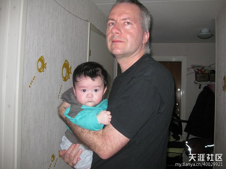 为了孩子们认不出其实那是爸爸,我把家里的灯都熄灭了,只留了圣诞树的灯。然后敲门声响起来了。我叫当当赶快去开门。Sven戴着圣诞老人的帽子和面具出现在门 口。门里是黑暗的,但门外路灯很亮。他粗着嗓门问:这屋里有乖孩子吗?当当赶快说:有的。一边赶紧逃进厨房里。他还是有点害怕。麦芽呢,嘎嘎的笑着叫 “爸爸”…….