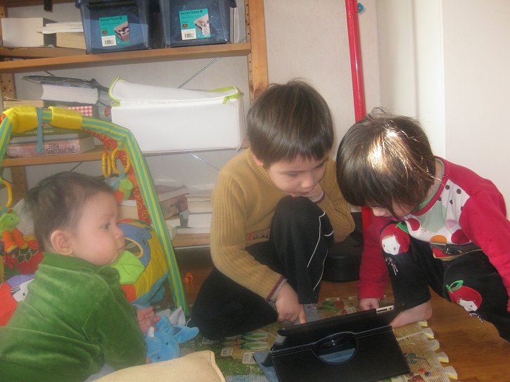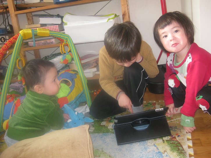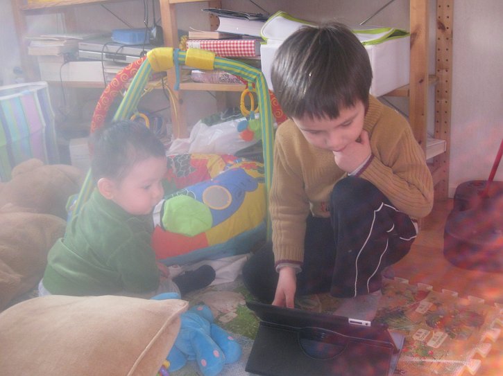 当当为了表示对弟弟的友爱,选择在弟弟旁边玩Ipad游戏。