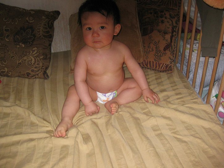 丁丁今天成功爬上了沙发!几张床他先后攻克,沙发比较高,今天他在转角那里,把右腿举起来,蹬在坐垫之间的缝隙里,小屁股一撅,就爬上去了。可是他只会爬上去,不会爬下来,只会摔下来或者掉下来,所以现在情况很危险……
