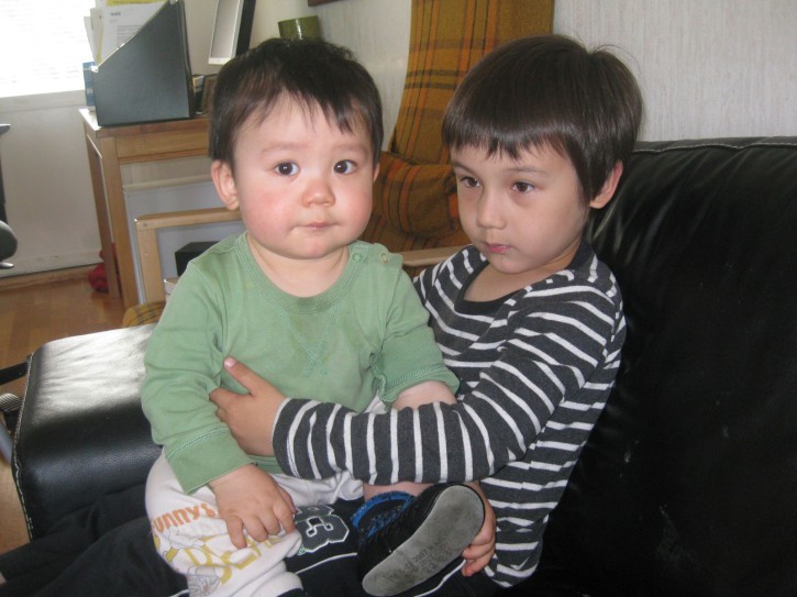当当这两天又有点便秘。他在卫生间坐了半天,我过去看。麦芽跟着来,要挤进卫生间。被Sven拦住了。