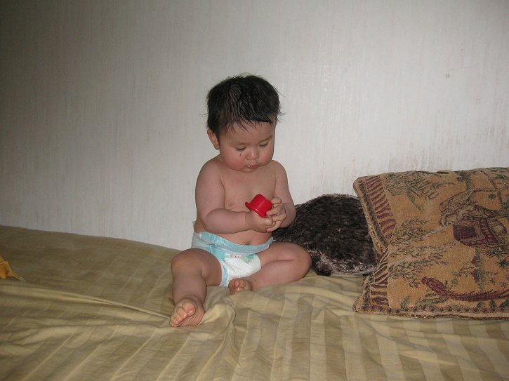 从幼儿园回来,当当在院子里玩。我和麦芽回到家,发现丁丁在大哭。我走的时候他还睡着,不知什么时候醒了。我打开房间门,看到他坐在床沿边上,却不敢下来。其实床边堆着大枕头,以前他 都是不管不顾就那样爬下来,摔到枕头上,然后再挣扎到地板上。今天上午,我搞卫生,没看好他,结果他从蹦蹦床上摔下来,摔到头了,当然很痛,嚎哭一 顿。其实这不是他第一次摔下来,但是这一次,好像他突然开窍了,知道摔下来会很痛,不像以前那样无知了。所以,后来我再把他放到蹦蹦床上,并在周围围了一 圈枕头,但是他却不敢下来,只是坐在上面哭。然后连床也不敢下来了……Sven说,他看见过两次丁丁正确地从床上爬下来。就是说,是趴在床边,脚先下 地。我却还没有见过。可能只是偶然行为吧,他还不算会爬下床了。要是会爬了,危险性就小多了。